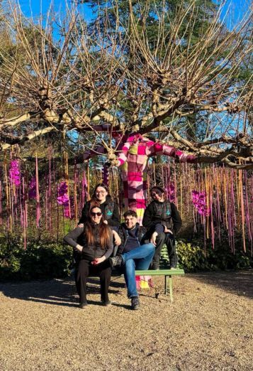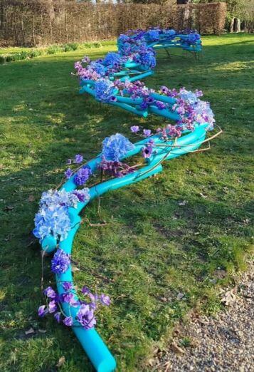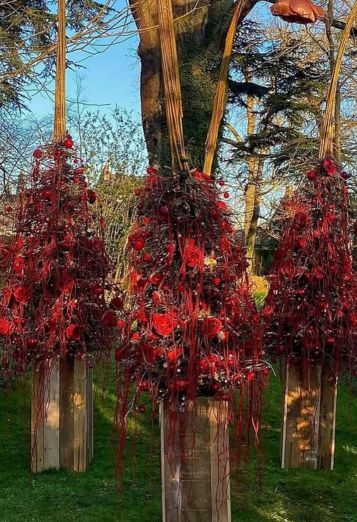 🌳 Arbres patchwork aux troncs habillés de feutrine et œuvres suspendues en orchidées. (📸 9)