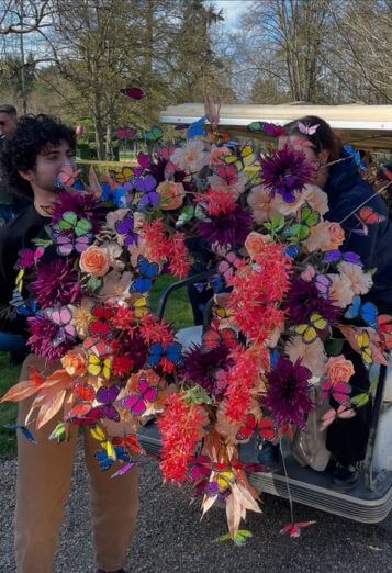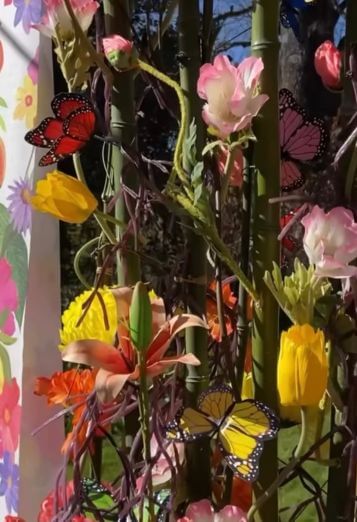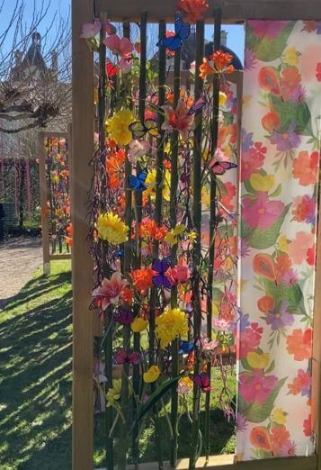 🦋 Pergola aux papillons, mousseline, tissus et couronnes pour un décor aérien. (📸 5&6)