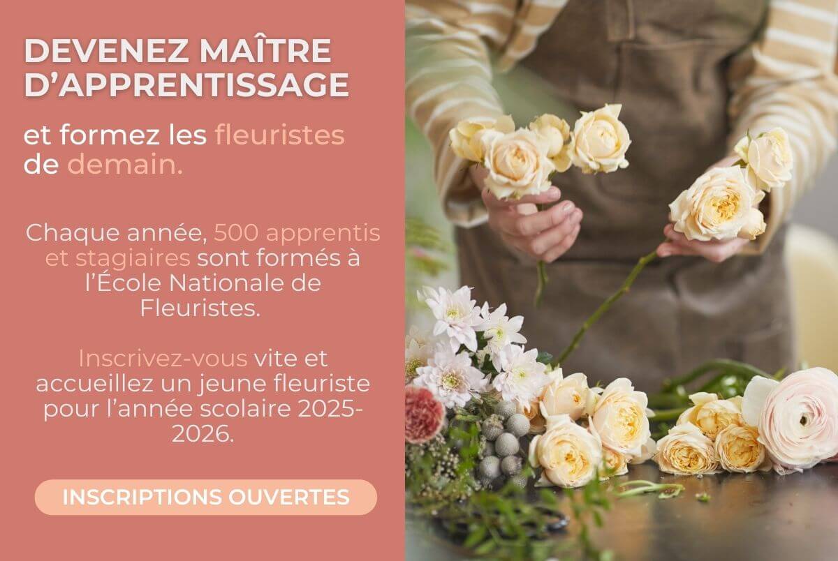 Chaque année, 500 apprentis et stagiaires sont formés à l’École Nationale de Fleuristes. Inscrivez-vous vite et accueillez un jeune fleuriste pour l’année scolaire 2025-2026