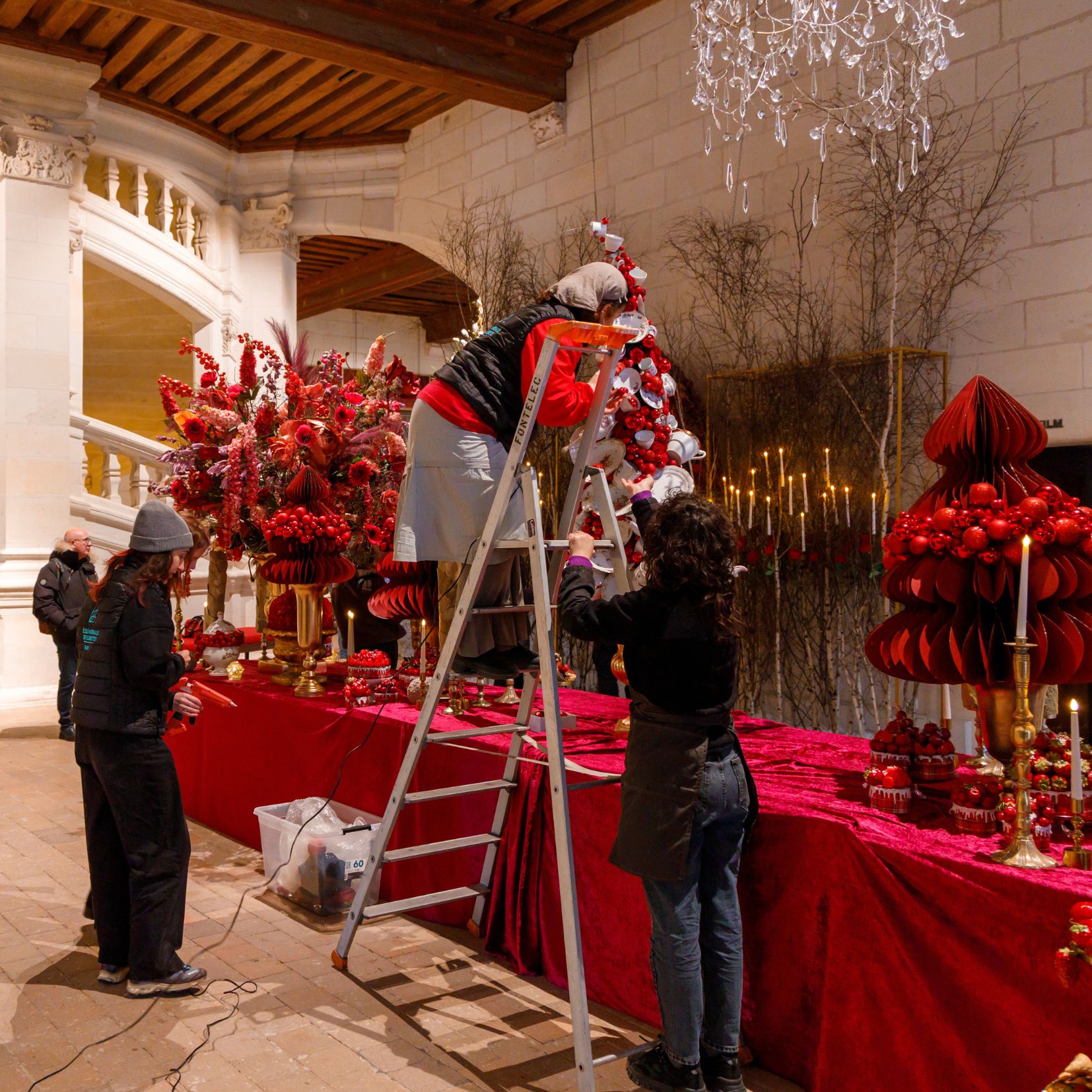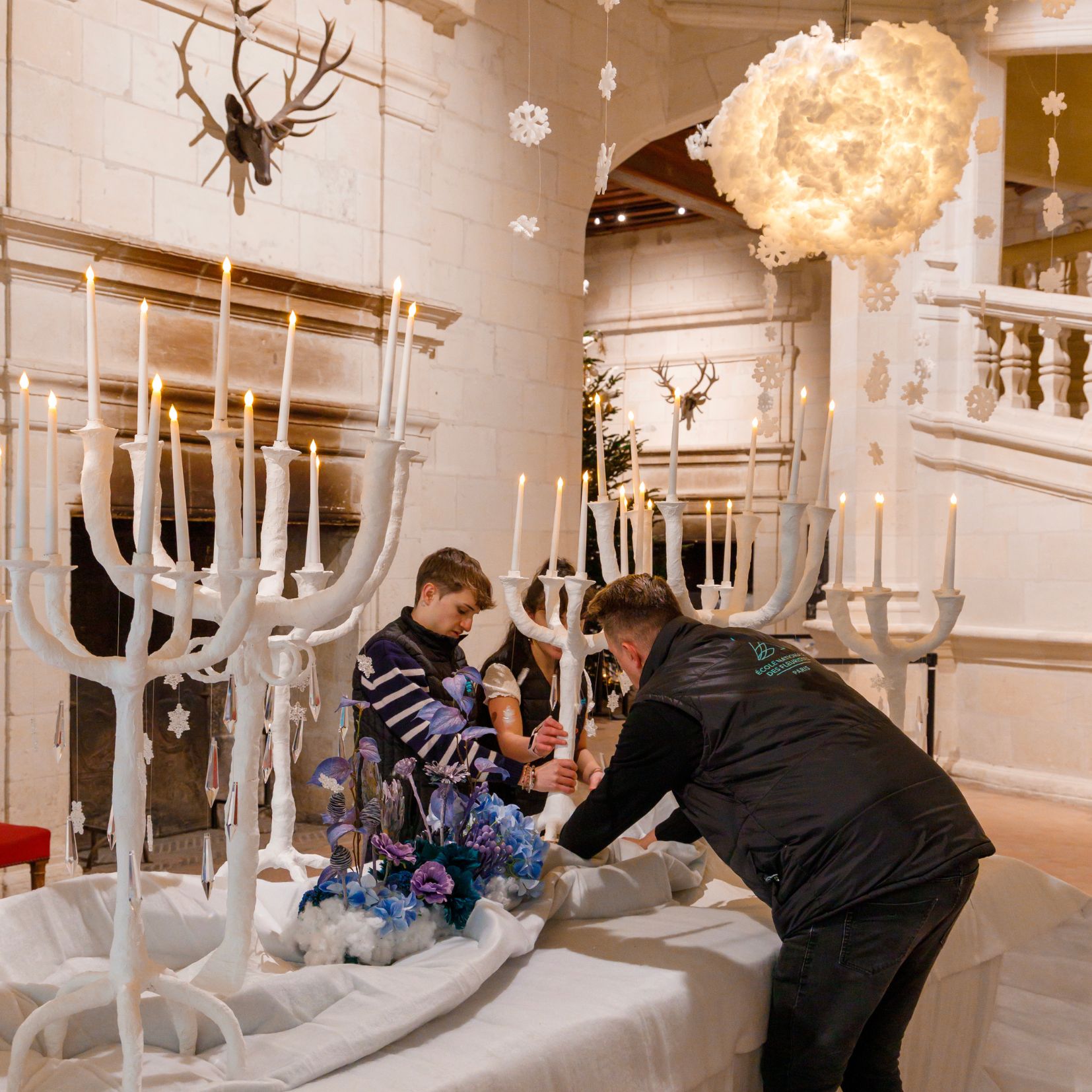 Guidés par Garry Taffin et Gilles Pothier, ce dernier étant MOF et Champion du Monde des Fleuristes, les 43 étudiants ont imaginé des décors uniques spécialement créés pour magnifier l’ambiance enchantée du château durant les fêtes. Le visiteur est invité à parcourir 8 espaces entièrement décorés, où se mêlent créativité, tradition et magie de Noël.